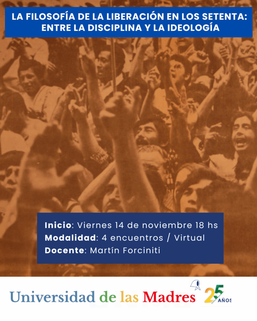 El curso propone una introducción y, a la vez, una problematización de la corriente de pensamiento filosófico denominada filosofía de la liberación, tal como se desarrolló en la Argentina entre comienzos y mediados de la década del setenta. Las complejas relaciones entre la filosofía de la liberación, el campo filosófico disciplinar y la política oficiarán de eje de todo el recorrido. En los 4 encuentros se abordarán respectivamente: las diversas hipótesis acerca del surgimiento de esta corriente (primer encuentro); el momento de auge de la producción filosófica liberacionista, en el contexto del retorno del peronismo al gobierno (segundo encuentro); las diferencias filosófico-políticas que se suscitaron entre estos filósofos (tercer encuentro); y, finalmente, las relaciones entre la filosofía de la liberación y la universidad, los exilios de varios de sus miembros y la continuidad de la perspectiva liberacionista a nivel regional (cuarto encuentro). Sobre esta base, se estará en condiciones de realizar una evaluación de los alcances, los límites y la vigencia de este hito decisivo en la historia de la filosofía argentina.